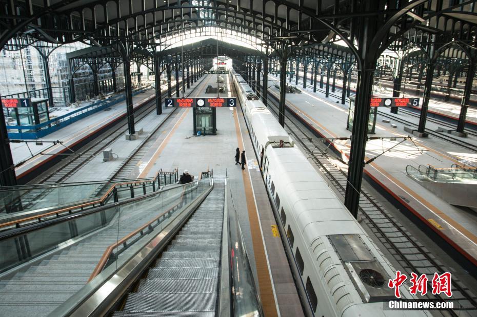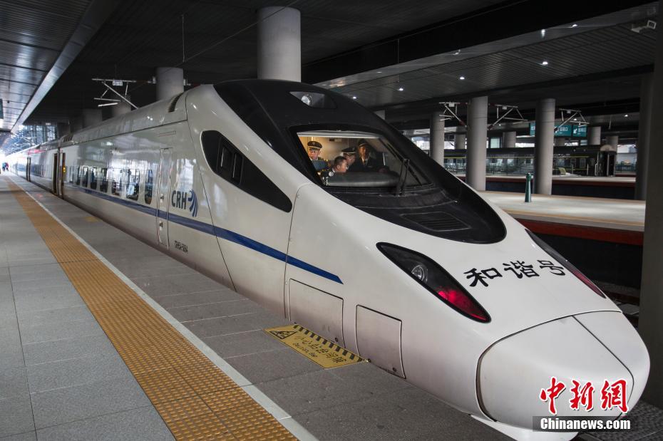 11月29日,哈牡高铁正式进入按图试运行阶段,预计年末正式开通运营。开通运营后,哈尔滨到牡丹江列车最快运行时间将由现在4小时17分缩短至2小时以内。图为旅客拍摄动车组列车。中新社记者 吕品 摄