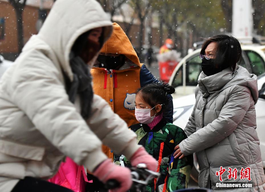 12月5日,河北石家庄,降雪天气影响市民出行。据了解,受较强冷空气影响,今日起未来三天,该省各地最低气温将明显下降,降温幅度普遍在6~8℃之间,其中北部地区局地可达8~12℃。图为一位市民的衣帽被雪“覆盖”。 中新社记者 翟羽佳 摄