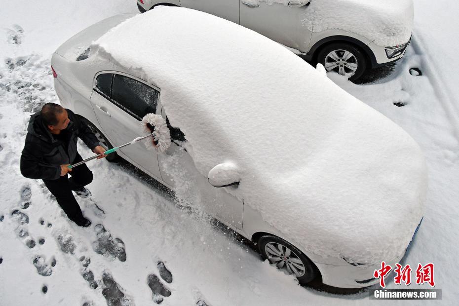 12月7日,大雪节气,中央气象台继续发布寒潮蓝色预警,受强冷空气影响,华北、黄淮等地降温明显,江南、华南、贵州南部等地的部分地区先后有4~5级偏北风,气温随之下降6~8℃。预计7日至9日,强冷空气将继续影响中国中东部地区,长江中下游地区将有较强降雪。图为12月7日,环卫工人在山东省烟台市福山区街头清理积雪。中新社发 孙文潭 摄 图片来源:CNSPHOTO