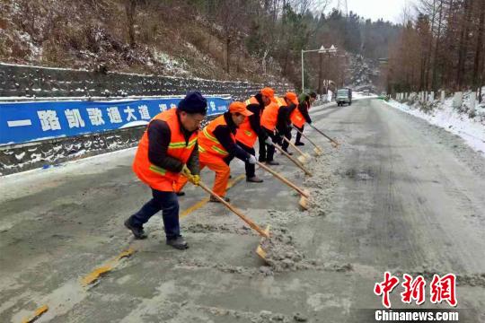 持续低温降雪 三峡公路部门铲冰除雪保畅通