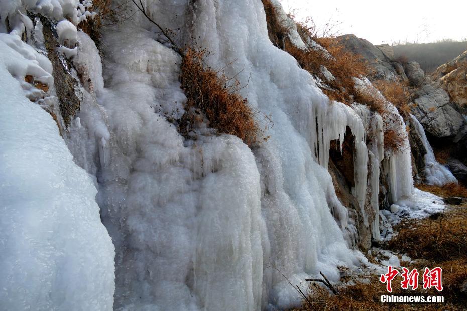 近日由于北京天气降温至—10摄氏度左右,山区更为严寒。在北京门头沟区王平镇山谷里,常年流动的山泉水凝结形成的巨大冰瀑,呈现北国景观,吸引游人前来观赏、拍照。图为12月10日,在北京市门头沟区王平镇山谷,山泉凝固形成的冰瀑,吸引市民前来观赏拍照。中新社发 李文明 摄 图片来源:CNSPHOTO