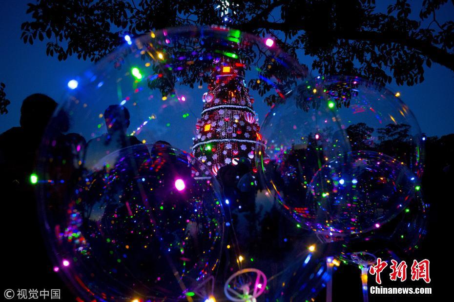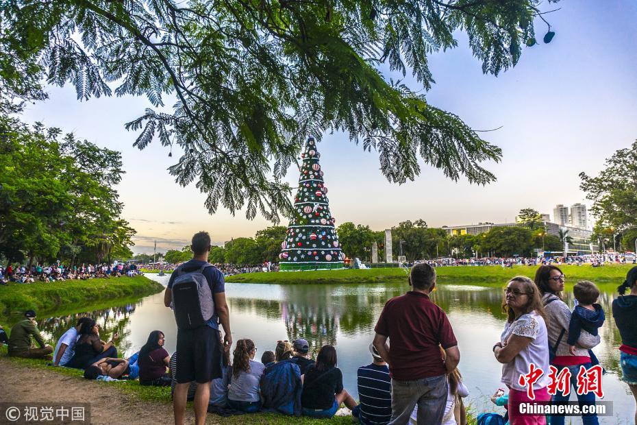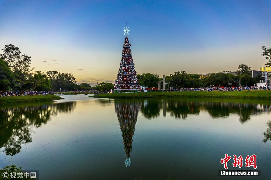 当地时间12月10日,巴西圣保罗,为迎接圣诞节,伊比拉布尔拉公园修建高43米圣诞树。图片来源:视觉中国