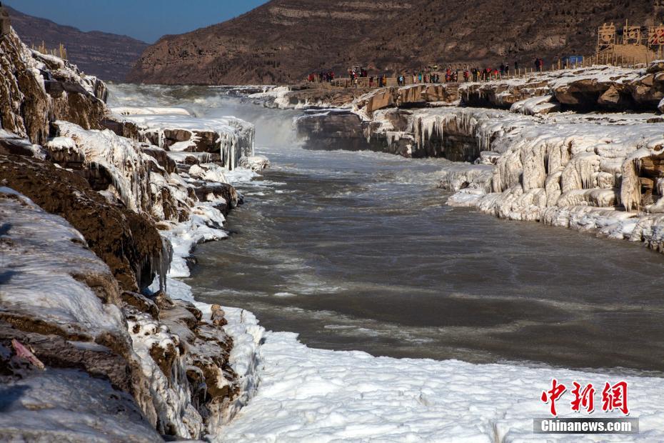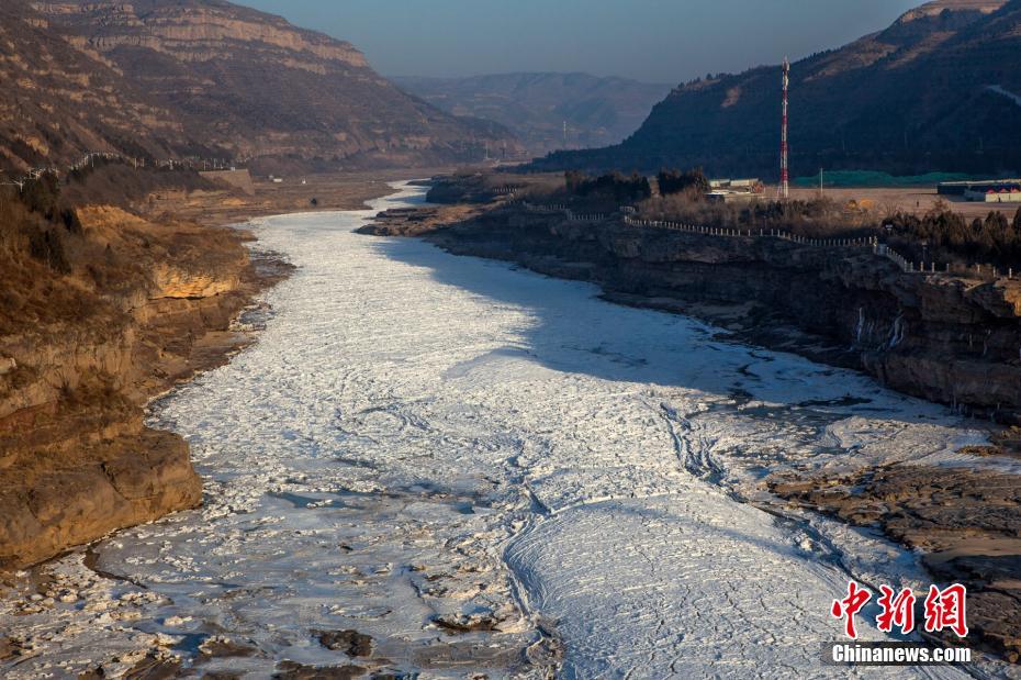 黄河秦晋峡谷十里龙漕冰封 壶口瀑布两岸现冰挂景观