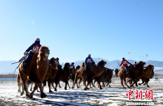 12月15日,甘肃省肃北蒙古族自治县第二届“丝绸之路那达慕”文化旅游节冬季那达慕暨首届骆驼文化节开幕。来自肃北各乡镇的120多峰骆驼参加10000米、8000米、2000米速度比赛。冰天雪地里,骆驼们昂首腾蹄,一改平时“慢腾腾”的性子,“蹄落不生尘,迅疾可比千里马”。