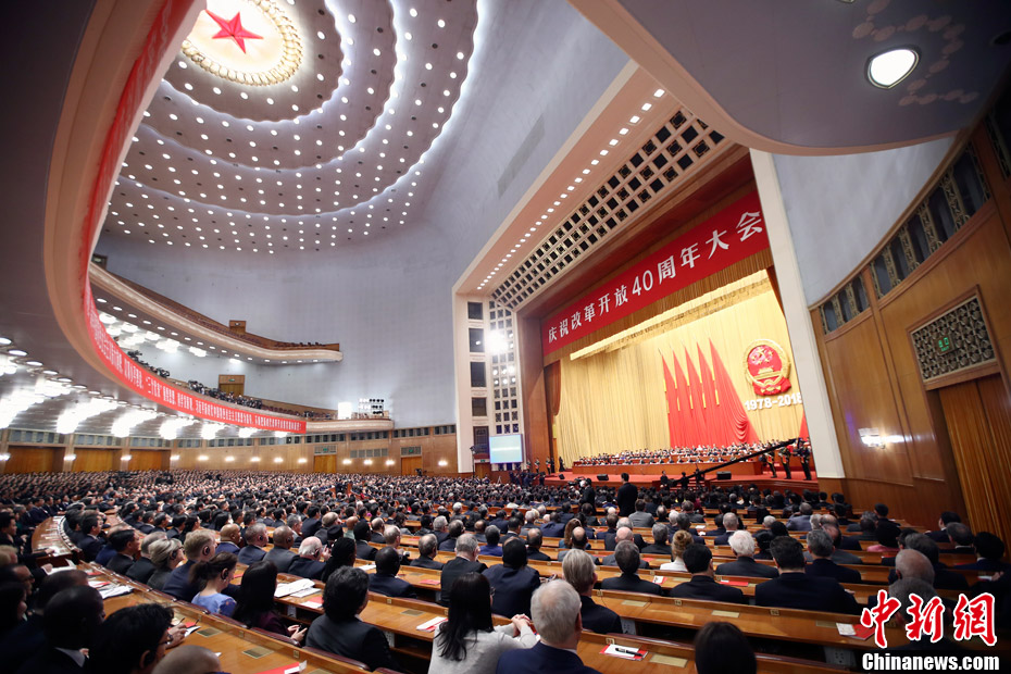 12月18日,庆祝改革开放40周年大会在北京人民大会堂隆重举行。中新社记者 盛佳鹏 摄