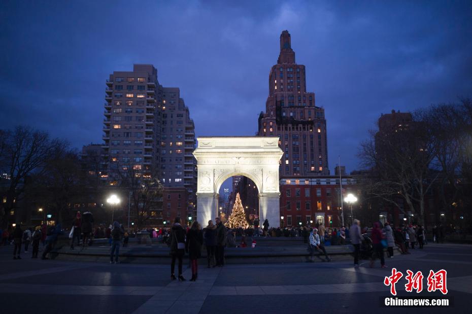 民众聚集纽约华盛顿广场共度平安夜