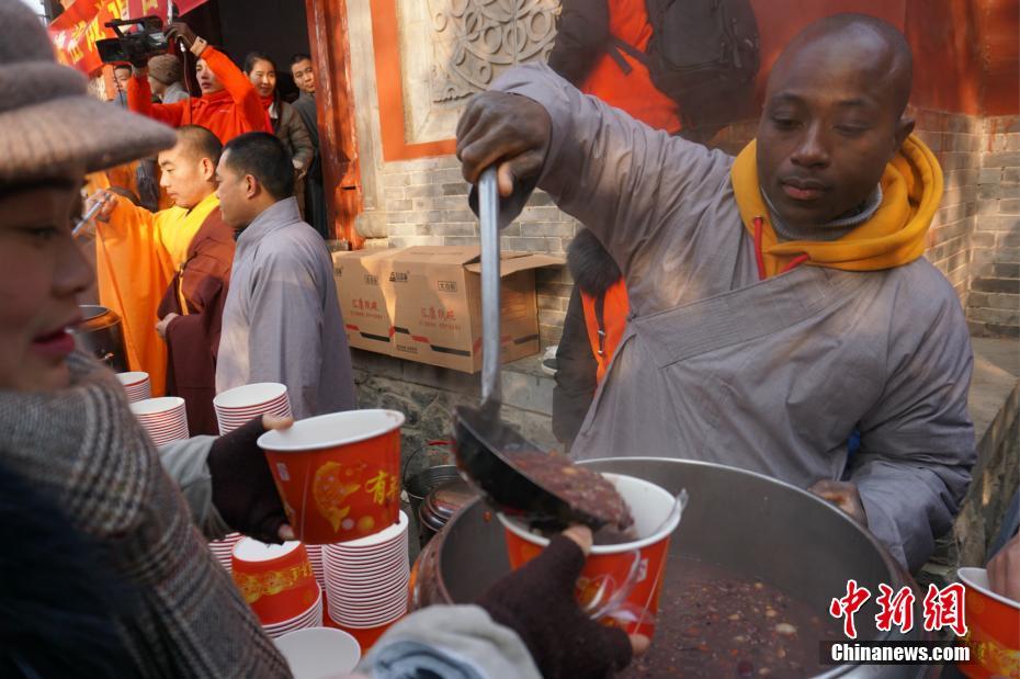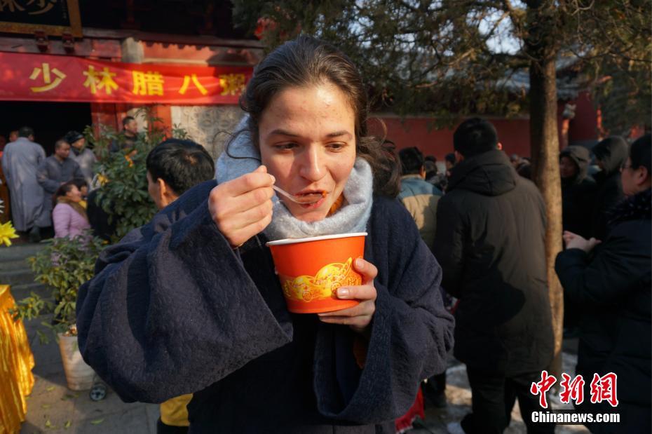 少林寺广施“少林五行腊八粥” “洋弟子”为民众分粥