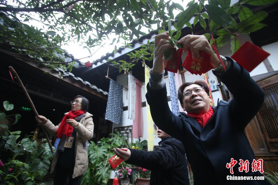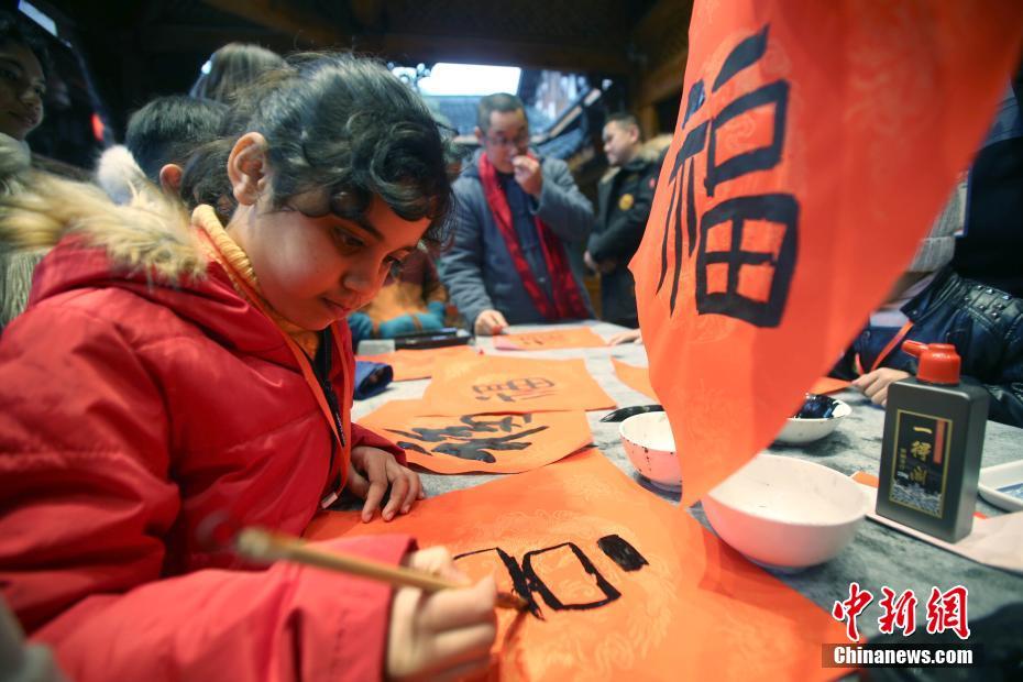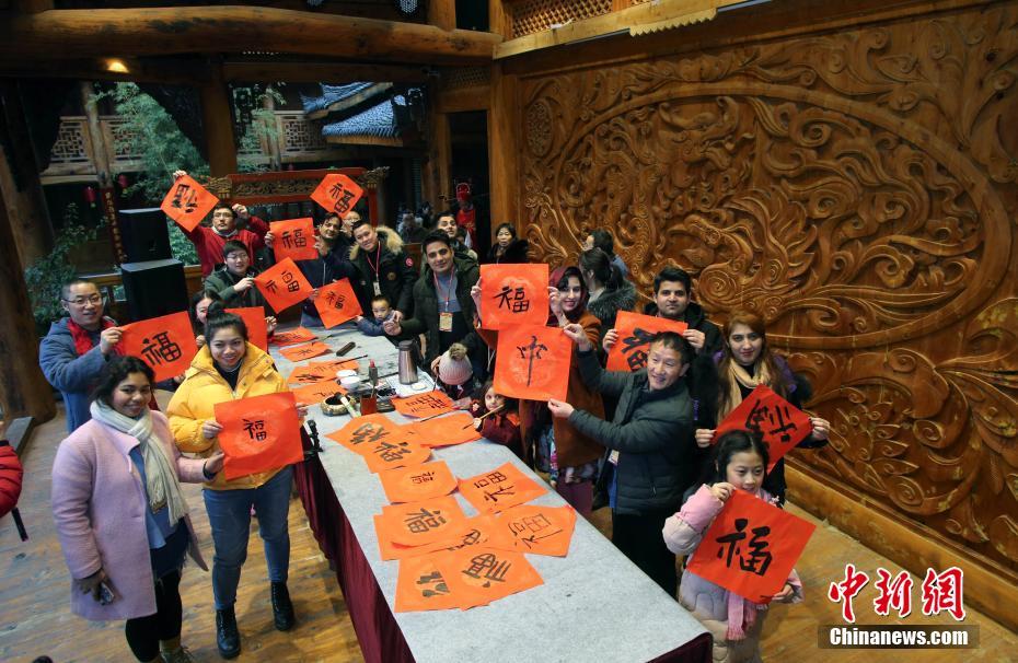 1月29日,海内外家庭阆中过大年活动在“春节发源地”四川阆中正式启动,来自韩国、芬兰、泰国、巴基斯坦等国家和地区的海内外家庭在阆中古城学扎染、包饺子、写“福”字等,体验千年古城的民风民俗。张浪 摄