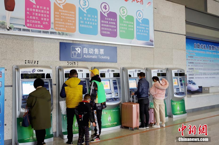 1月30日,全国首家自助无人售票厅于2019年春节前正式亮相南昌西站。据介绍,自助无人售票厅最大的亮点在于整合了目前人工窗口可以办理的基础功能,不仅售票、取票、查询自助化,连制证、退票也可以自助完成。中新社发 周光辉 摄