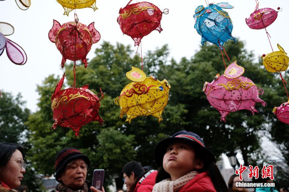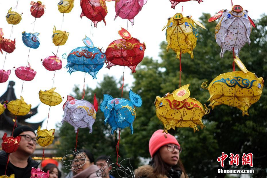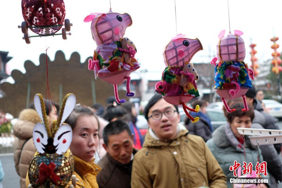 2月10日,南京夫子庙花灯市场上,各种彩灯吸引民众关注,其中尤以“猪”为造型的彩灯格外受到青睐。中新社记者 泱波 摄