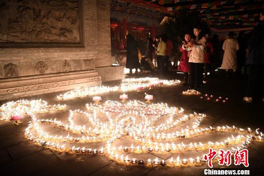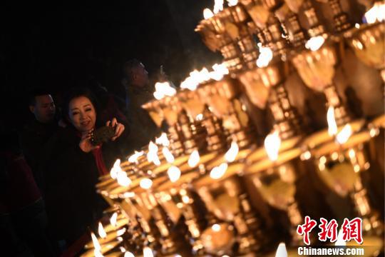 2月12日(农历正月初八)晚间,民众在陕西唯一的喇嘛庙西安广仁寺,点亮酥油灯祈福新春。广仁寺创建距今已有300多年,是陕西省唯一的藏传佛教寺院。